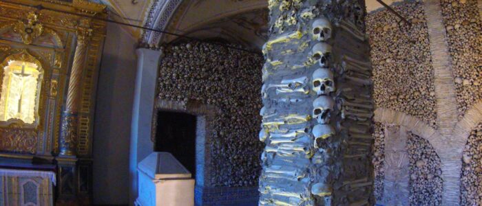 Construída no século XVII junto à Igreja de São Francisco, a capela exibe cerca de 5.000 ossos de monges, numa composição artística que lembra a nossa mortalidade