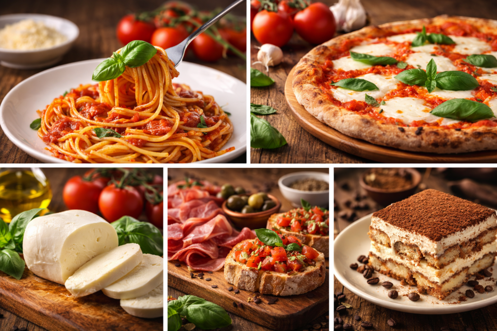 - 🍰 Tiramisù (sobremesa clássica italiana com café e cacau)