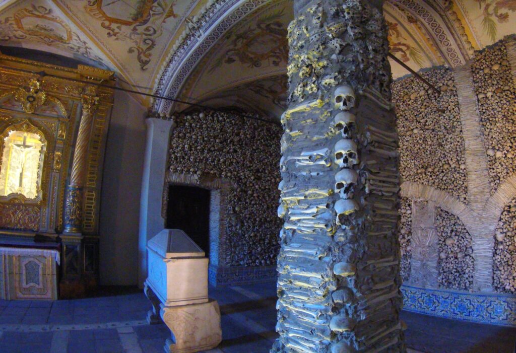 Inserida na Igreja de São Francisco, esta capela do século XVII é revestida com ossos de mais de 5.000 monges. A inscrição na entrada — “Nós ossos que aqui estamos pelos vossos esperamos” — convida à reflexão sobre a vida e a morte.