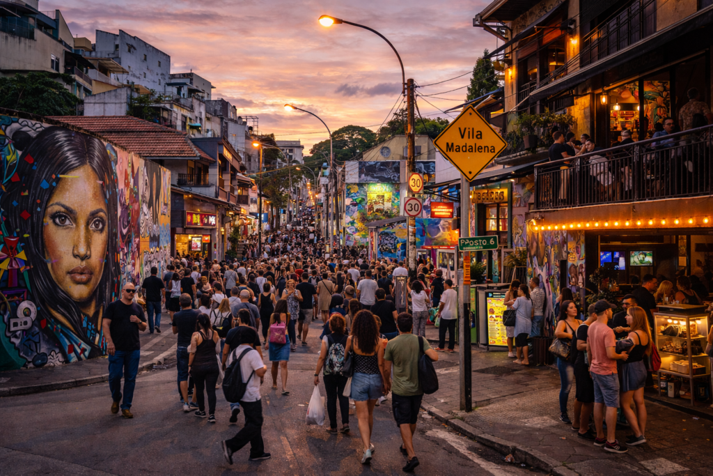 A Vila Madalena é um dos bairros mais charmosos de São Paulo, conhecido pela sua arte urbana e vida noturna animada. O famoso Beco do Batman é um dos principais pontos, com murais coloridos que atraem turistas de todo o mundo.