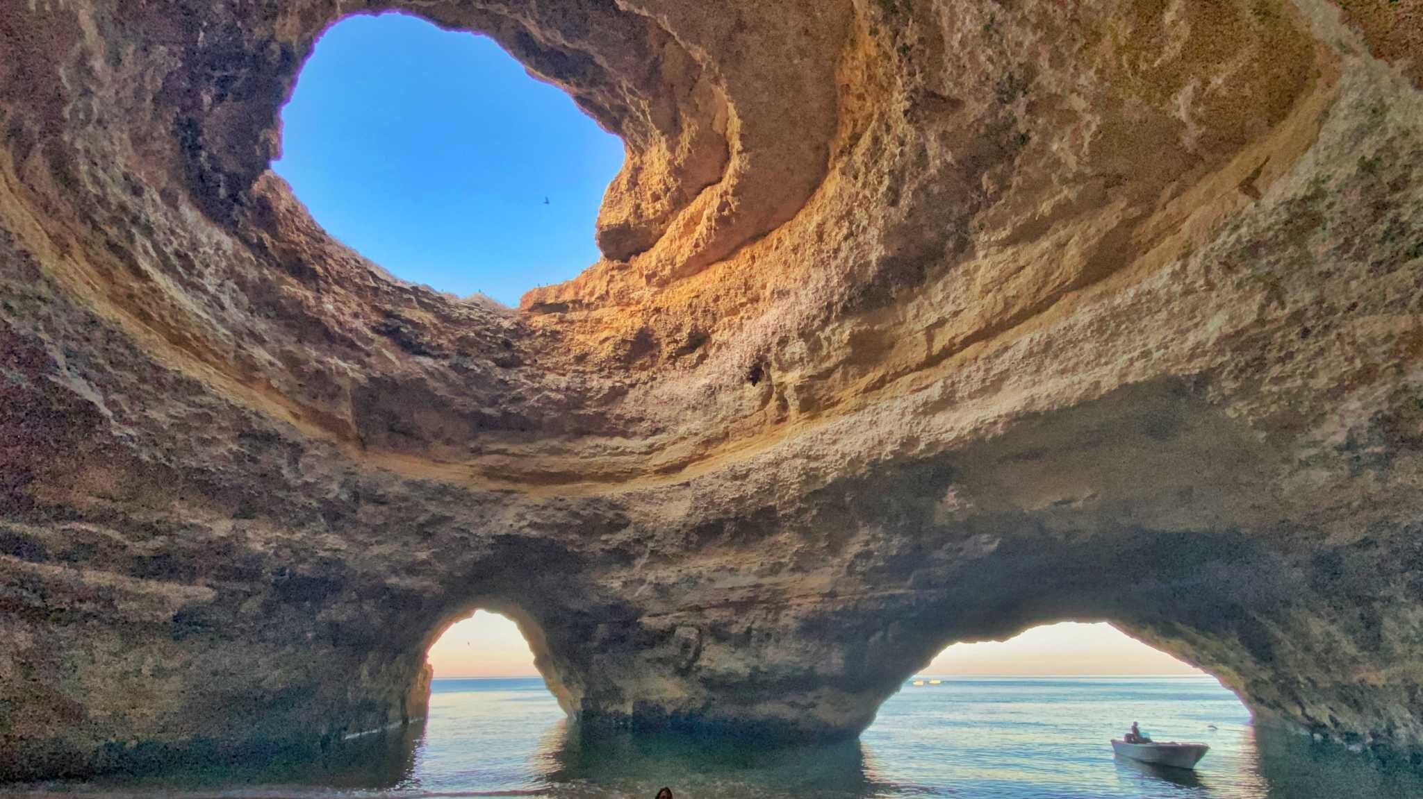 O passeio de barco à gruta de Benagil é um dos mais icônicos do Algarve. Também podes ir de caiaque ou paddle, mas com precaução.